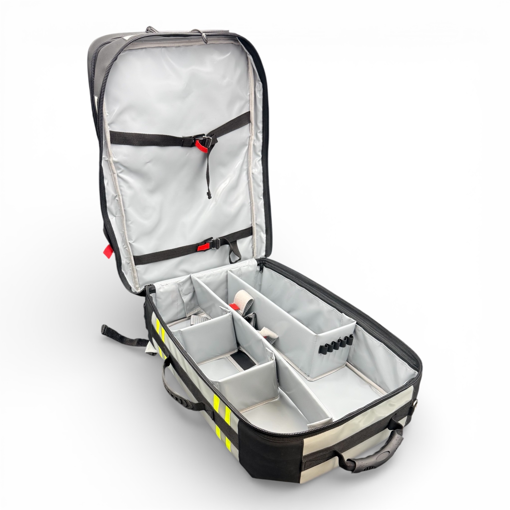 • deux poches avant ( poche du haut avec des élastiques pour un rangement rapide et efficace et poche latérale parfaite pour un accès rapide à une pochette)